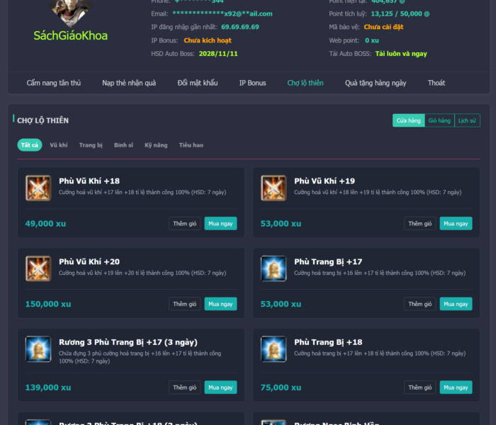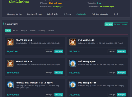 Hi các bác, Các bản cập nhật gần đây có thêm 1 vật phẩm là Đồng Tiền Bang Hội, giúp.
